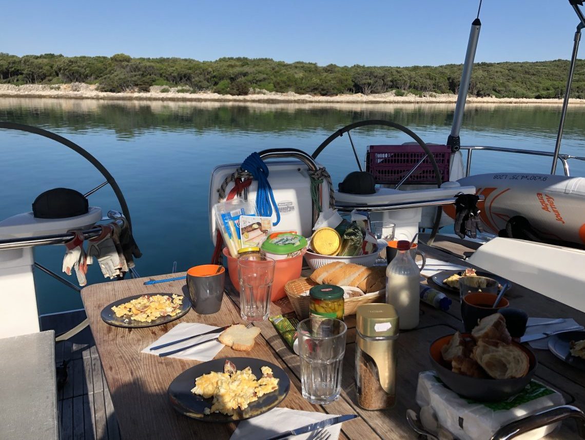 Im Schnitt fallen ca. 35,- bis 45,- Euro (Stand 2018) pro Person und Tag an. Diese Kosten sind abhängig ob viel an Land oder an Bord gegessen wird. Inkludiert sind alle Kosten der Bordkassa für Essen und Trinken (Vorort und von Zuhause mitgenommenes), div. Abgaben und Gebühren, Liegeplätze in Marinas und Häfen, div. Eintritte Naturschutz und Besichtigungen, Wasser, Strom und Yacht-Diesel.